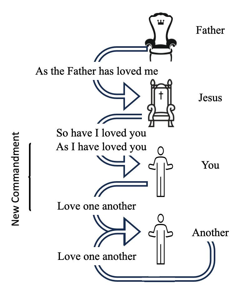 For this action to comply with the New Commandment – as I have loved you, love one another – we need to see the bigger picture. We need to see love flowing through the kingdom from it source, the Father.