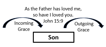 Incoming grace to Jesus was full in that all the love from the Father was directed through him. Outgoing grace from Jesus was full in that he did not improvise with some love of his own. He did not love us with love he did not receive from his Father. Jesus was the exact image of God.