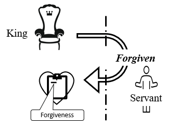 The servant begged for mercy, and the king forgave the debt. Let us invoke the model at this point to see where we are.