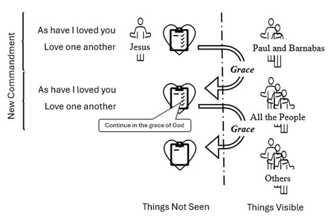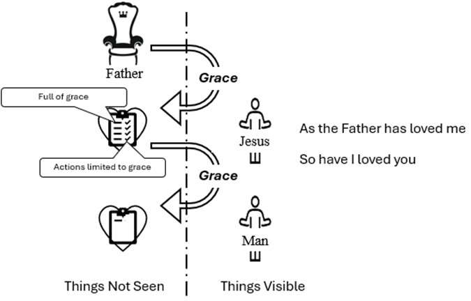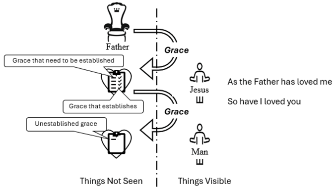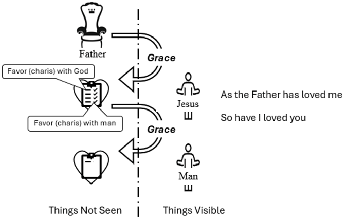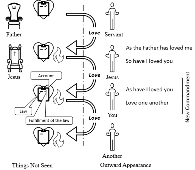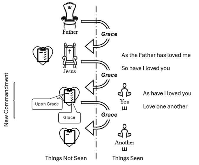 This grace does not map into the model, and that is the point of the verse. The New Commandment says, Love one another as I have loved you. When you love one another as others have loved you, nothing gets credited to your account – there is no benefit, the benefit being grace credited to your account.