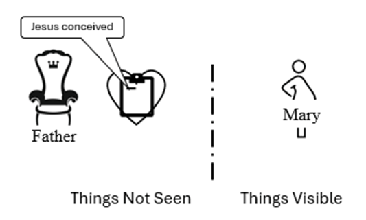 Remember how I said that the first step in the New Commandment is to receive the love? Before you can love one another, you must first receive love, the as I have loved you part. The angel asked Mary for permission: would she be willing to receive the love of God and conceive his Son? When she agreed, grace was planted in her in the realm of things not seen. Grace was found in her, in the sight of God.