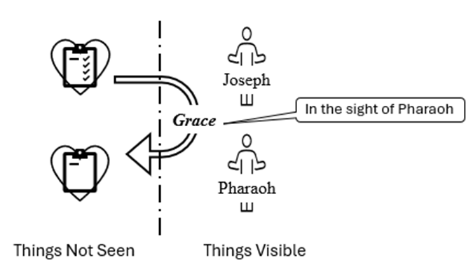 As Joseph delivered the grace that had been given to him, that grace briefly passed into the realm of things visible where Pharaoh could see them.